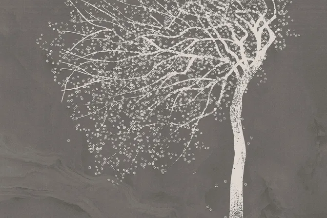 Drzewo z kwiatami wiśni na marmurze.
