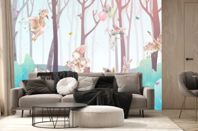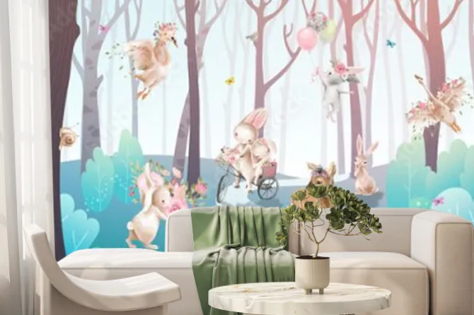 Fototapeta: Dziecięca ilustracja z leśnymi zwierzętami