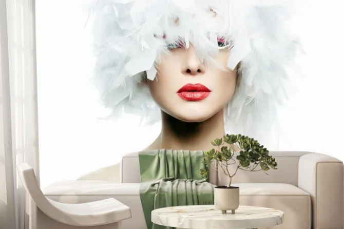 Fototapeta: Dziewczyna z piórami na głowie