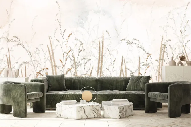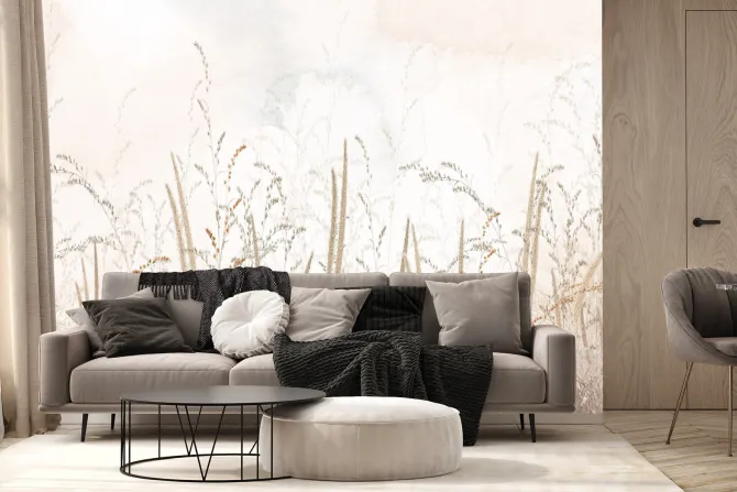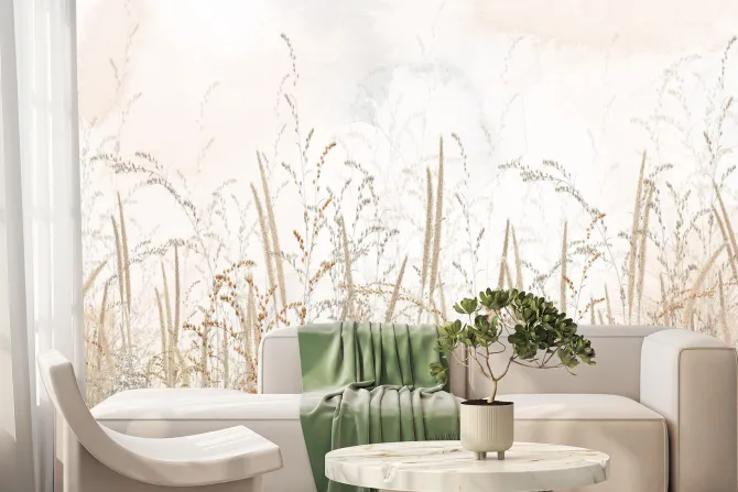 Fototapeta: Dzika łąka z trawami na beżowym tle