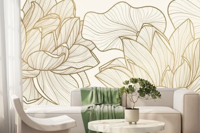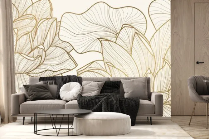 Fototapeta: Eleganckie złotawe kwiaty na beżowym tle