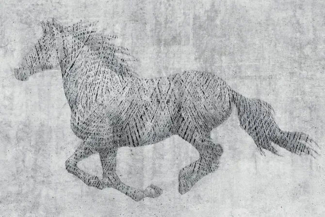 Fototapeta: Galopujący koń na betonowym tle