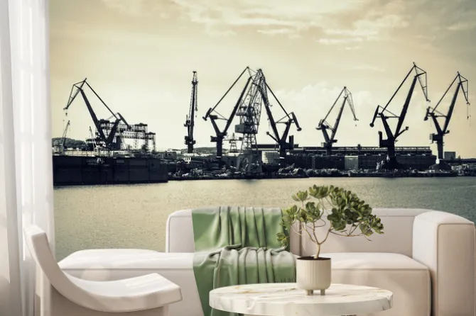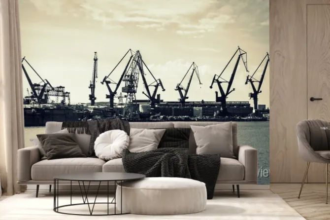 Fototapeta: Gdańska stocznia z dźwigami