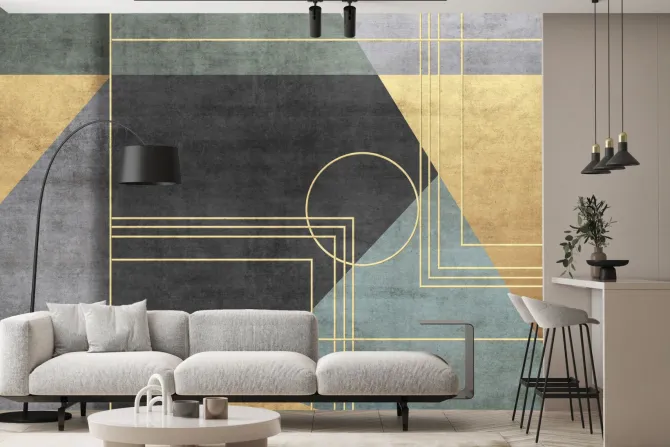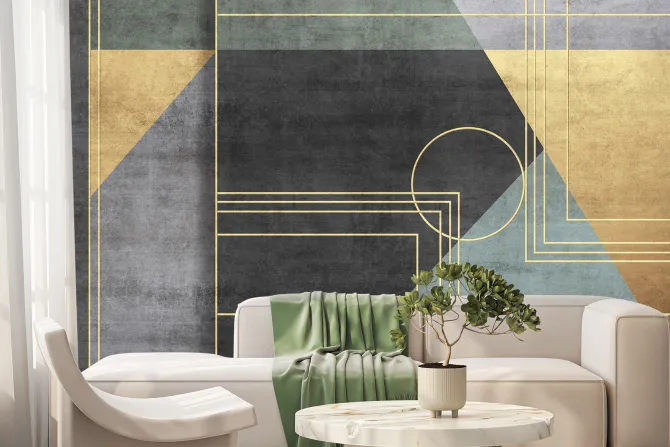 Fototapeta: Geometryczne figury w kolorach czerni zieleni i złota