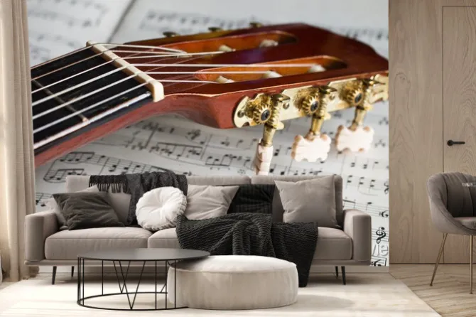 Fototapeta: Główka gitary na nuty