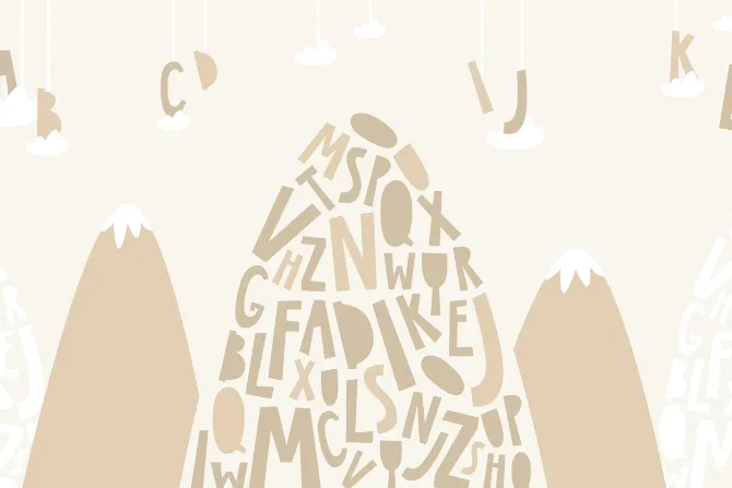 typografia, pokój dziecięcy, chmury na niebie -, chmury, alfabet, góry