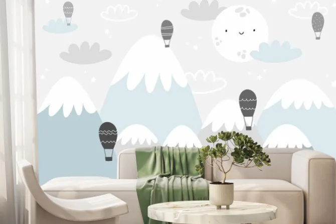 panorama, rysunek, widok, pokój dziecięcy, sztuka, styl skandynawski, niebo, góry, krajobrazy