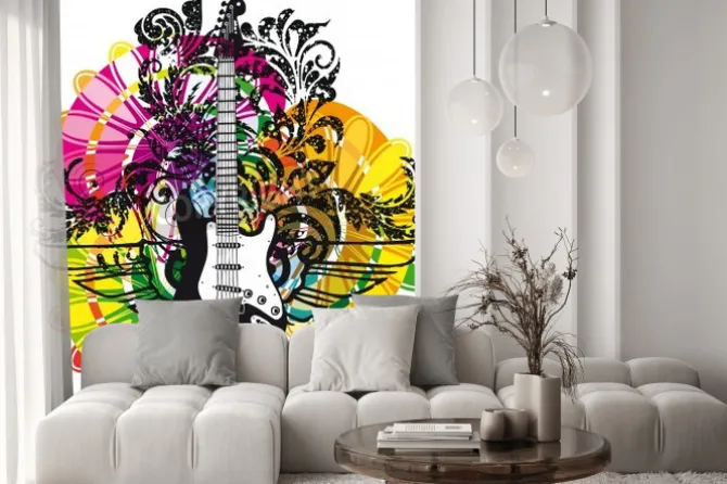 instrumenty, vinyl, gitara, jazz, koncert, muzyka, kwiaty, taniec