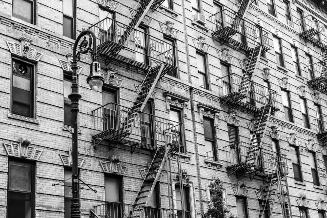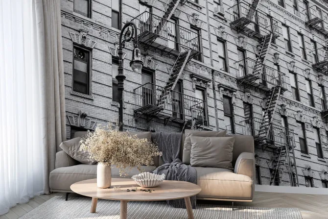 Fototapeta: Kamienica ze schodami w stylu vintage