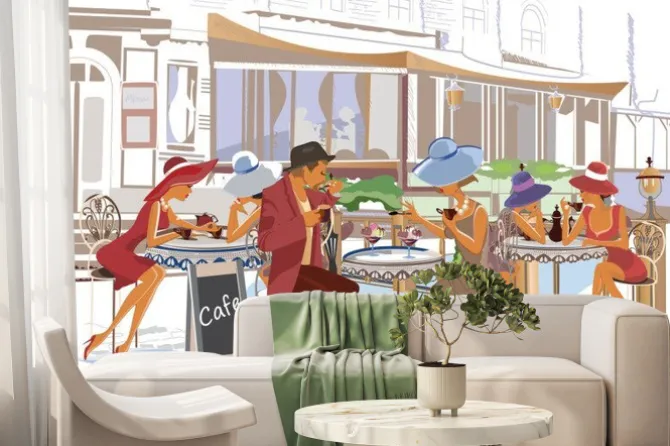 Fototapeta: Kawiarenka starego miasta w stylu akwareli