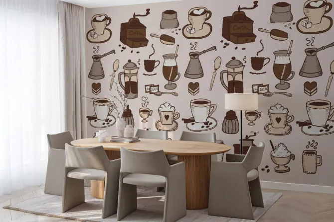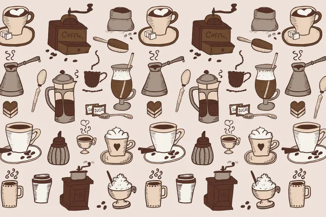 Fototapeta: Kawowy wzór z filiżankami i młynkami