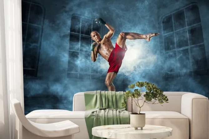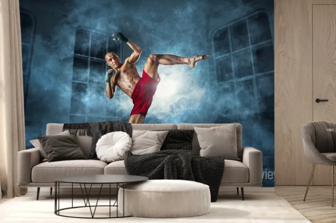 Fototapeta: Kickbokser w trakcie treningu