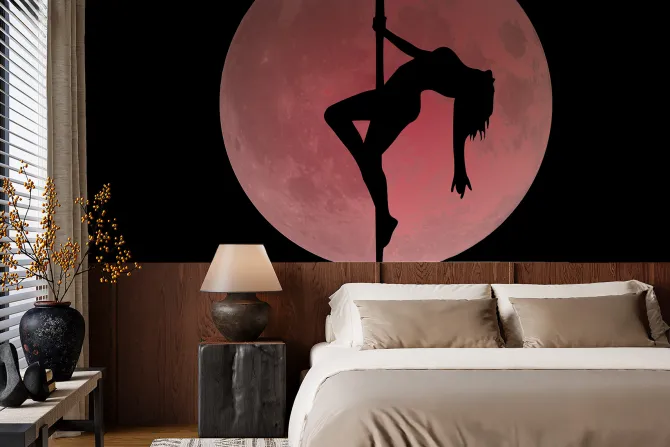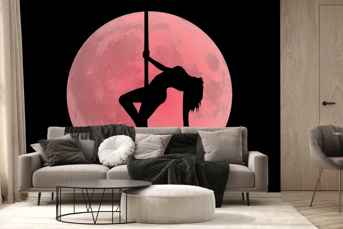 Fototapeta: Kobieta tańcząca na rurze w pełni księżyca