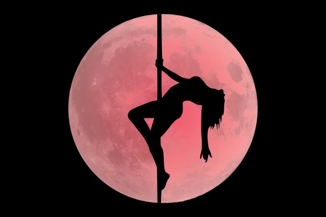 Kobieta tańcząca na rurze w pełni księżyca .