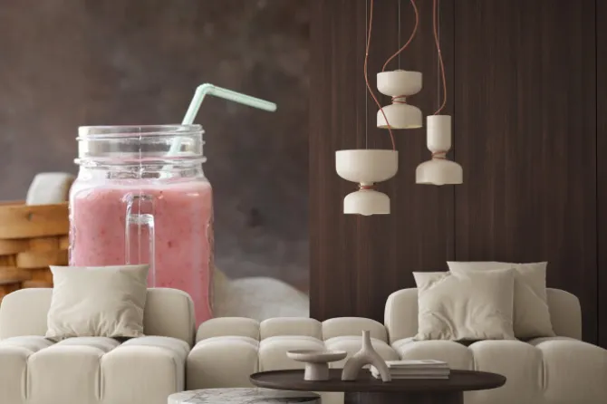 Koktajl truskawkowy ze świeżych owoców i jogurt w słoju.