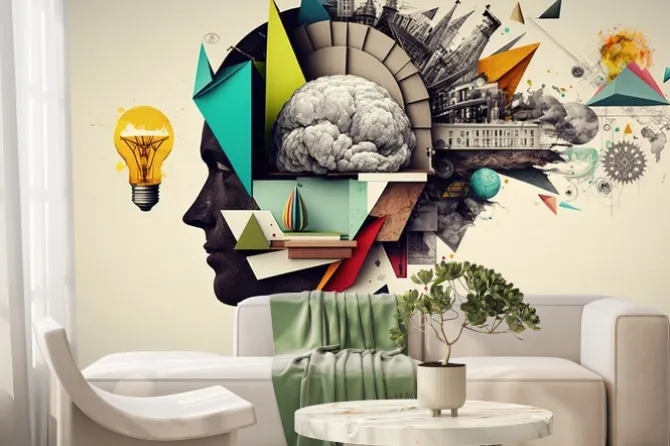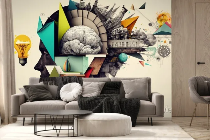 Fototapeta: Kolaż artystyczny z głową pełną pomysłów