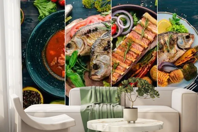 Be the first to review “Fototapeta: Kolaż potraw. sałatki, przekąski, dania mięsne i ryby. na drewnianym” Anuluj pisanie odpowiedzi