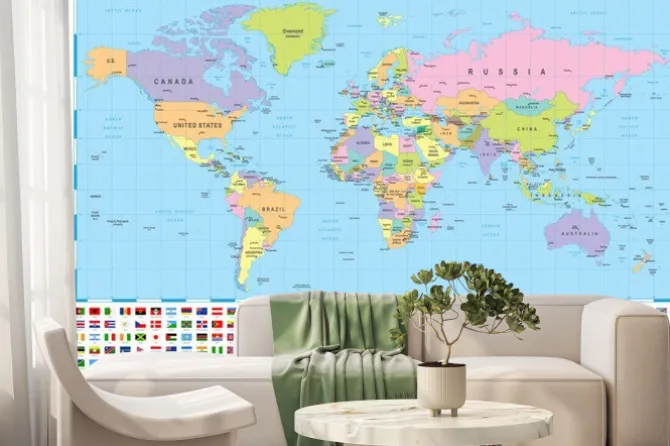 Be the first to review “Fototapeta: Kolorowa mapa świata z flagami państw” Anuluj pisanie odpowiedzi