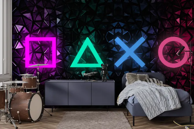 abstrakcja, gamer, pokój młodzieżowy, kolorowe, czarne tło, geometryczne