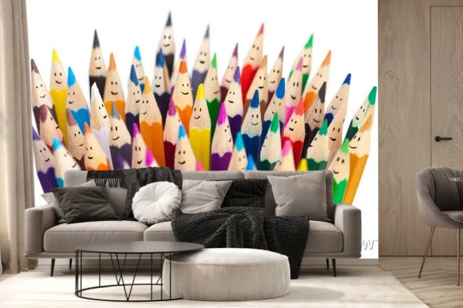 Fototapeta: Kolorowe kredki z uśmiechniętymi buziami