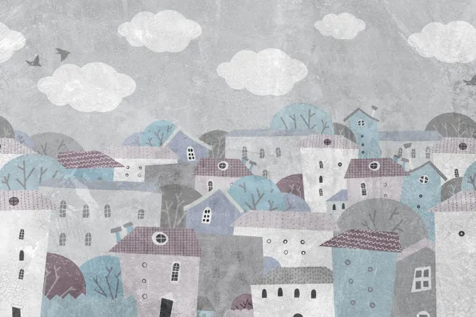 Fototapeta: Kolorowe miasteczko w stylu akwareli dla dzieci