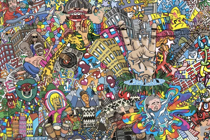 Fototapeta: Kolorowe wzory budynków i ludzi
