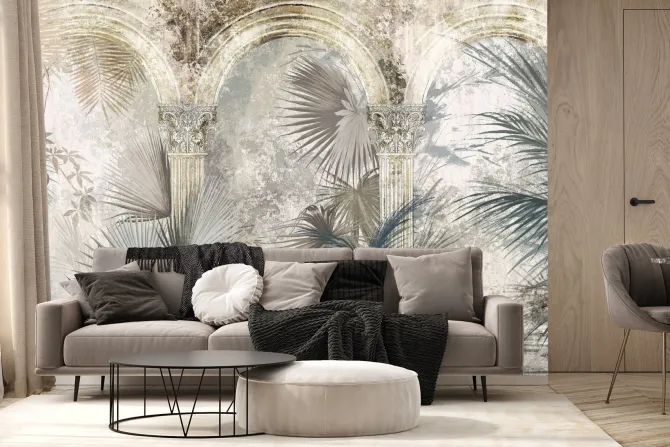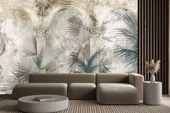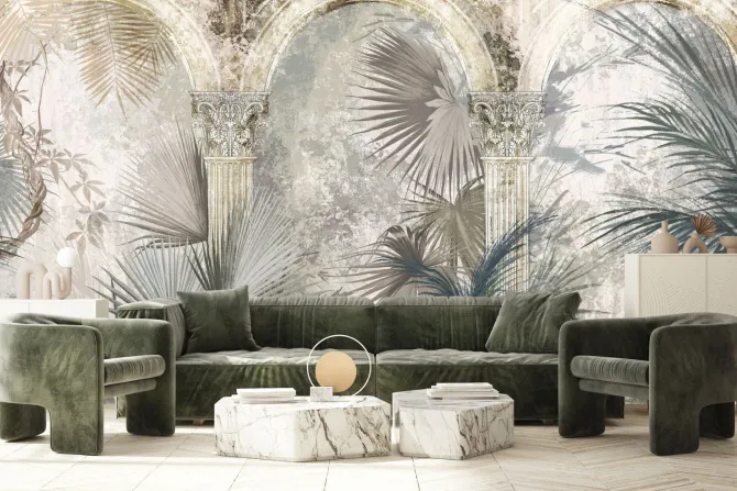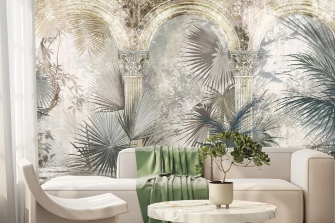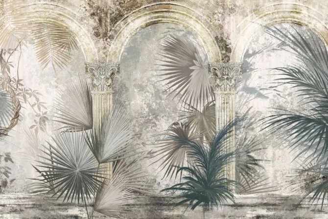 Fototapeta: Kolumny i egzotyczne liście palmowe