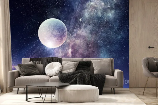 Fototapeta: Kosmiczny widok z realistycznym księżycem