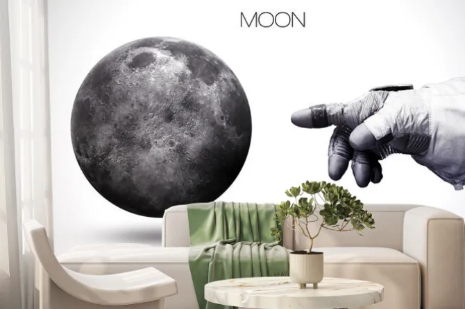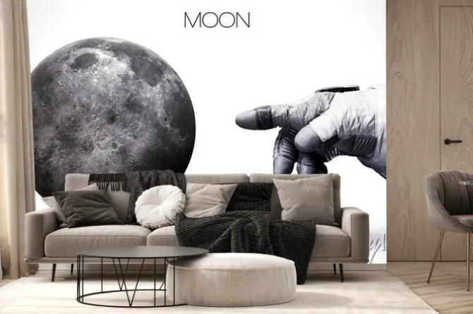 Fototapeta: Kosmonauta wskazujący na księżyc