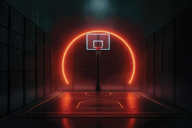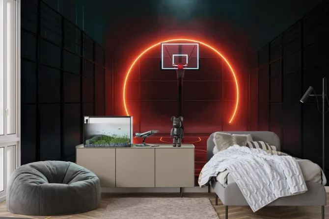 Fototapeta: Kosz do koszykówki z czerwonym neonem