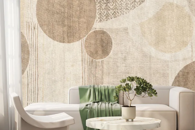 Fototapeta: Kształty kół i pasków w brązowej aranżacji