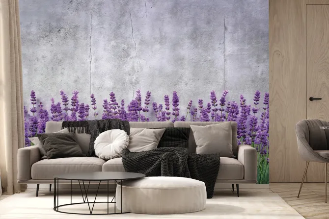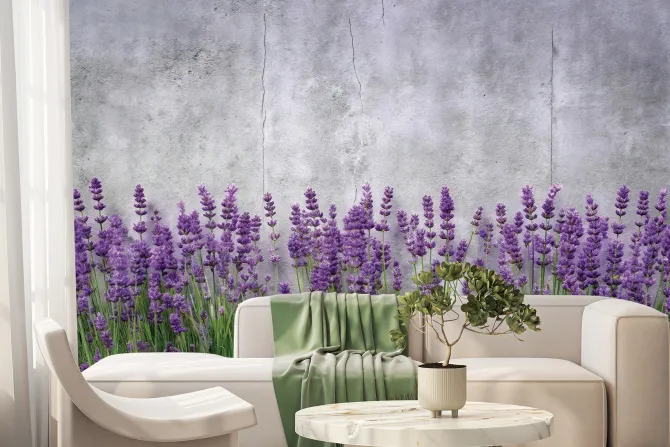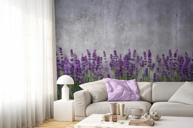 Fototapeta: Kwitnąca lawenda na betonowym tle