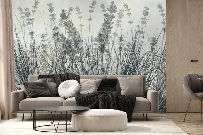 Fototapeta: Łąka z trawą i kwiatami lawendy