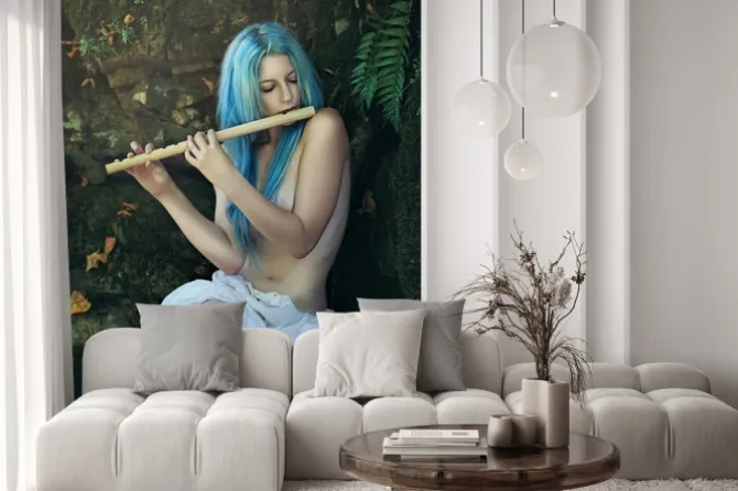 wróżka, muzyka, las, drewno, kobieta, dziewczyna