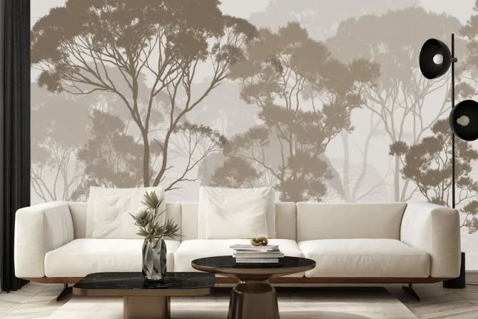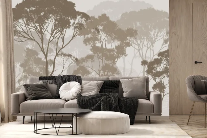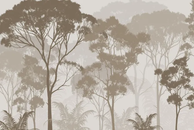 Fototapeta: Leśny krajobraz drzewa w odcieniach brązu