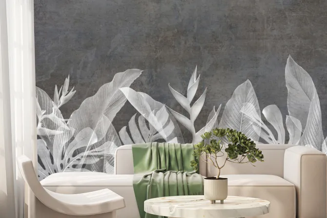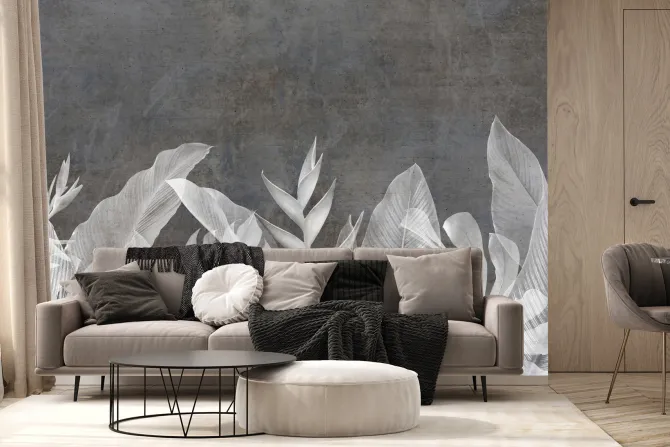 Fototapeta: Liście na imitacji betonu