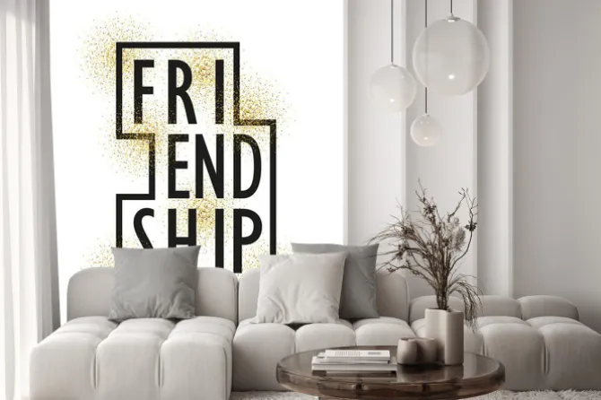 Litery z napisem przyjaźni na tle Złotej spa.