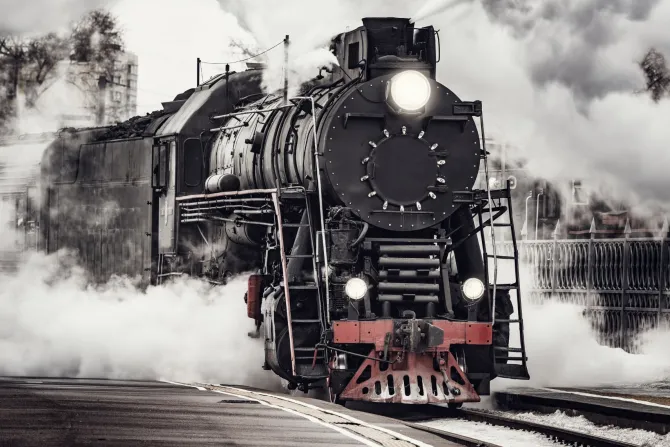 Fototapeta: Lokomotywa parowa na stacji kolejowej
