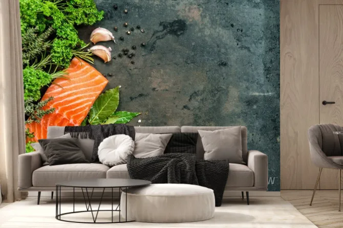 Fototapeta: Łosoś filet z ryby z ziołami i przyprawami