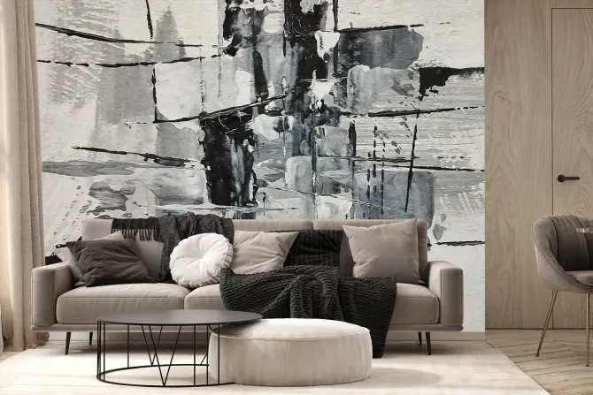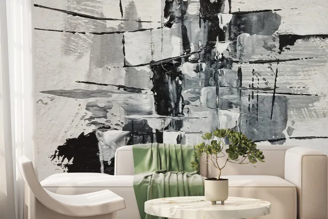 Fototapeta: Malowana ściana czaro-białymi farbami