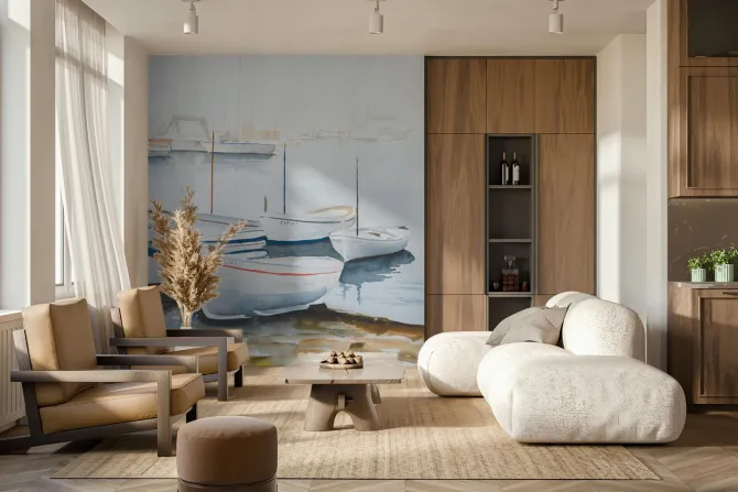 Fototapeta: Malowany wzór z łódkami na brzegu