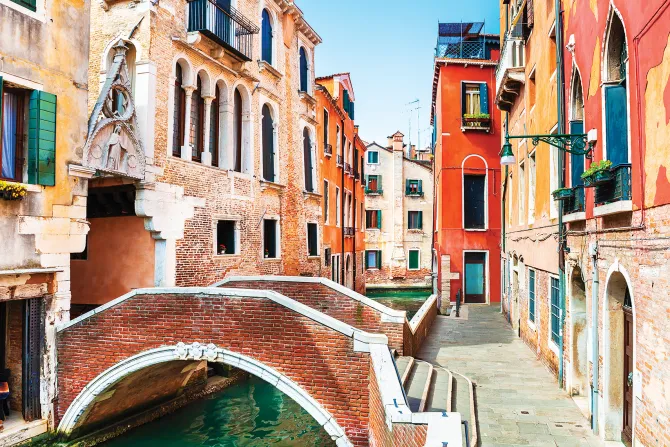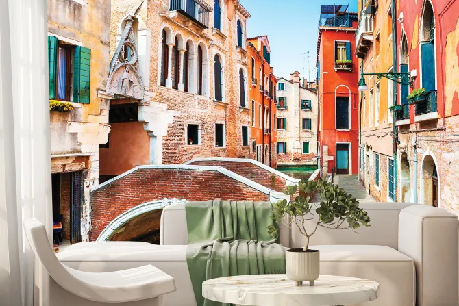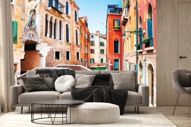 Fototapeta: Malowniczy kanał z mostem otoczony kamienicami