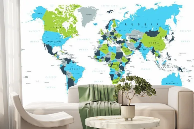 Fototapeta: Mapa polityczna świata z przewagą niebieskiego i zielonego