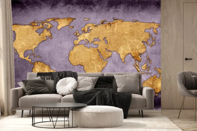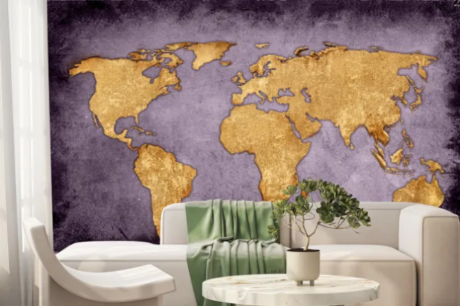 Fototapeta: Mapa świata na ciemnym fioletowym betonowym tle