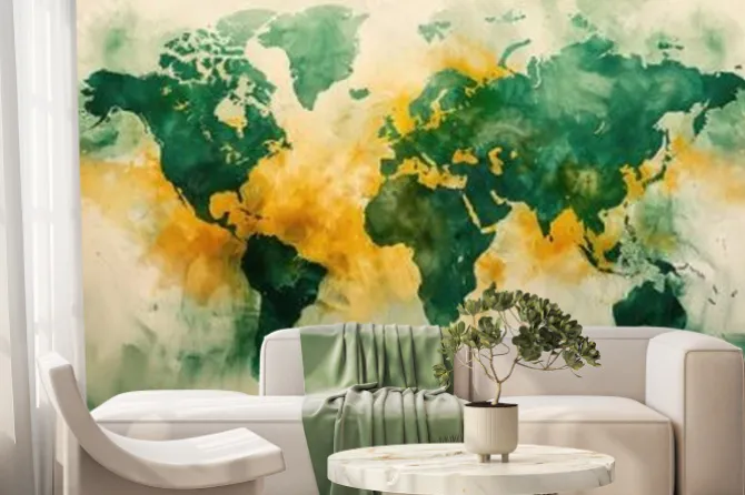 Fototapeta: Mapa świata w zielonym i żółtym kolorze