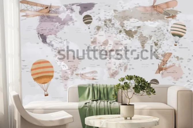 Fototapeta: Mapa świata zwierząt do projektowania tapet dla dzieci