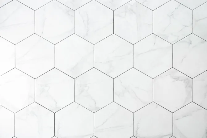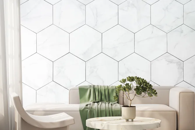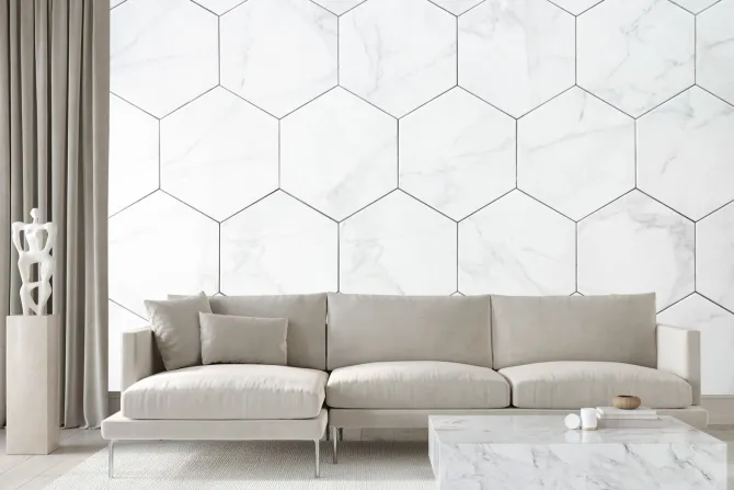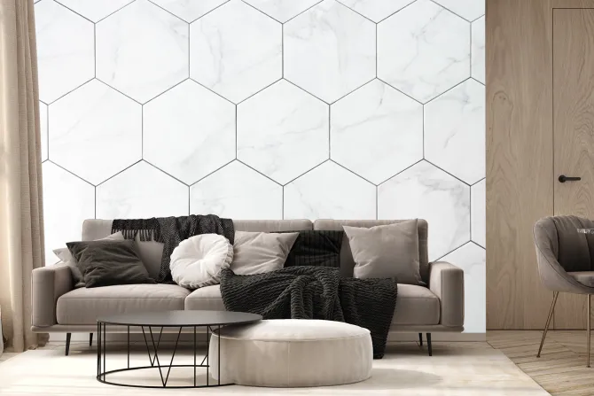 Fototapeta: Marmurowa ściana z sześciokątnymi płytkami