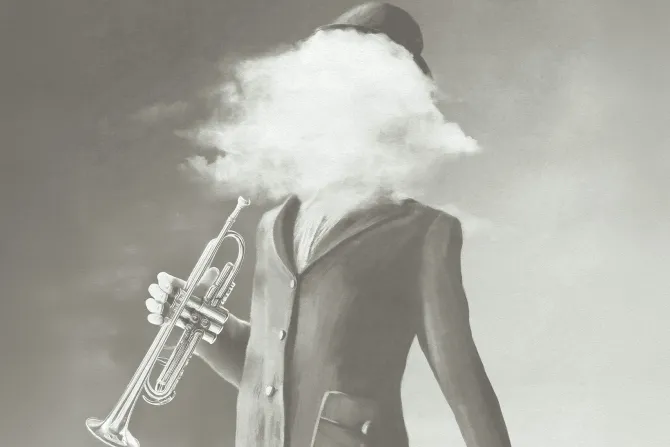 Fototapeta: Mężczyzna z zamgloną twarzą i trąbką