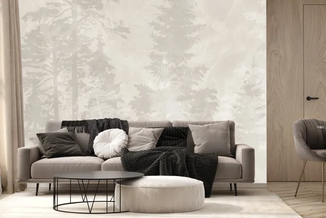 Mglisty las iglasty w beżach minimalistyczny wzór.