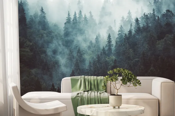 Fototapeta: Mglisty las jodłowy w klimacie retro vintage